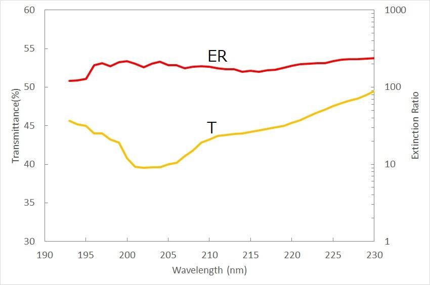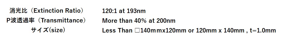 波長が193nm~220nmまでの波長に対して100:1前後の消光比を持つ偏光板。