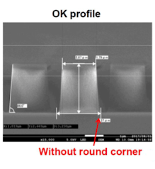 角の丸みは無く、歩留まりの低下と輝度のバラツキの課題を解決できます。